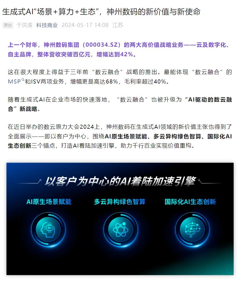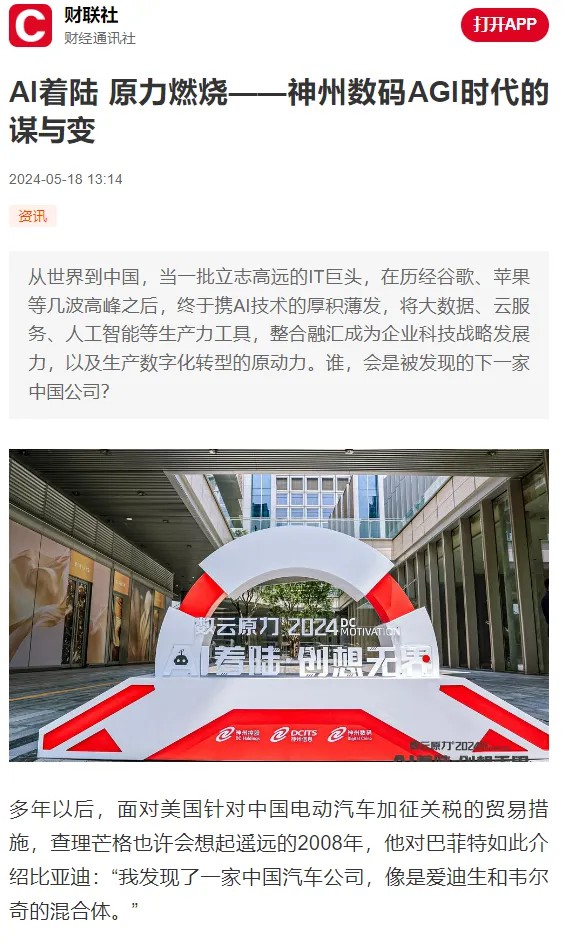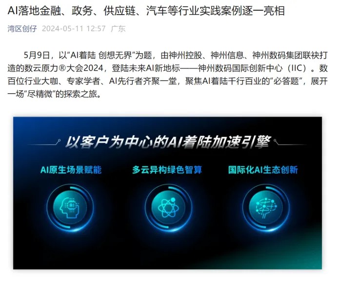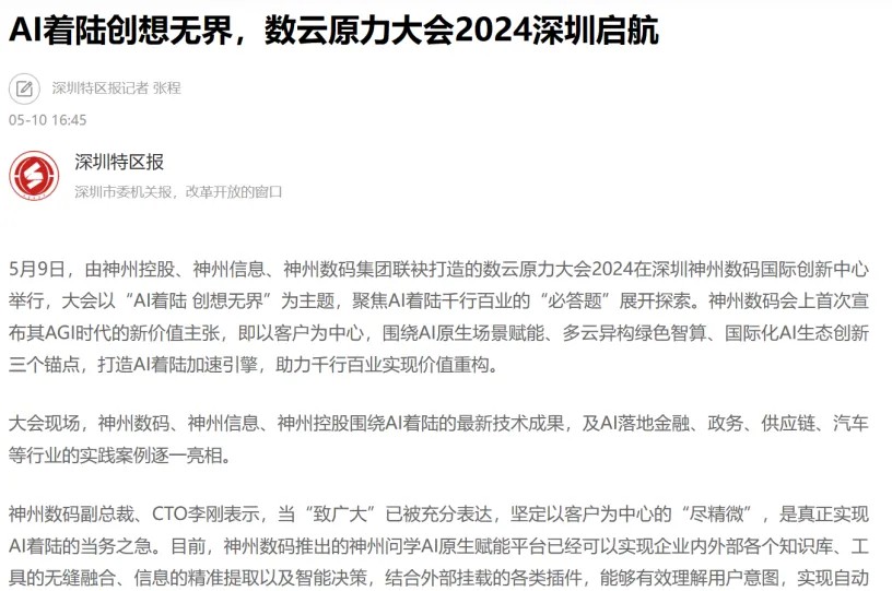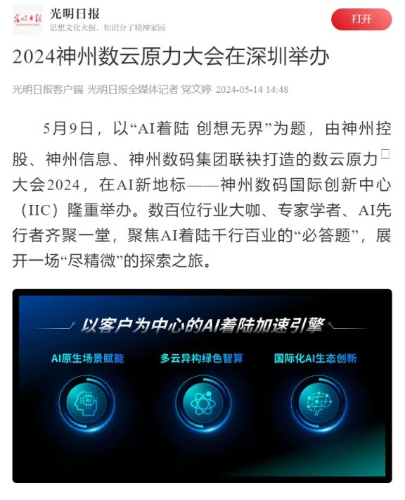 近日,由神州控股、神州信息、jcjc5500公海集团联袂打造的年度盛会——数云原力大会2024开幕式,在未来AI新地标——jcjc5500公海国际创新中心(IIC)圆满落幕。这场以“AI着陆 创想无界”为主题的活动,不仅引起了业界的广泛关注和讨论,也引发了媒体的争相报道。