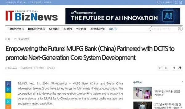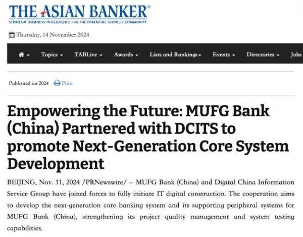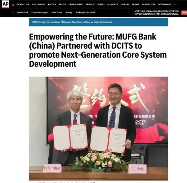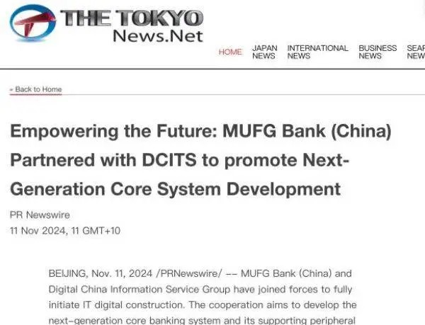 神州信息成功与三菱日联银行(中国)就新一代核心系统达成战略合作。继汇丰中国后,再次收获国际金融数字化转型案例,全面助力出海。